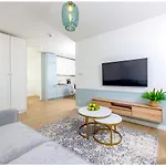 En este apartamento hay una cocina completa con un hervidor eléctrico, un horno y utensilios de cocina, además de servicio de tetera/cafetera. La estación de autobuses Wylotowa przy Plazowej está cerca de la propiedad. Con lujos como sauna, terraza solárium y jardín, disfrutarás del máximo relax. Aprovecha también clases de fitness para enriquecer tu ocio.